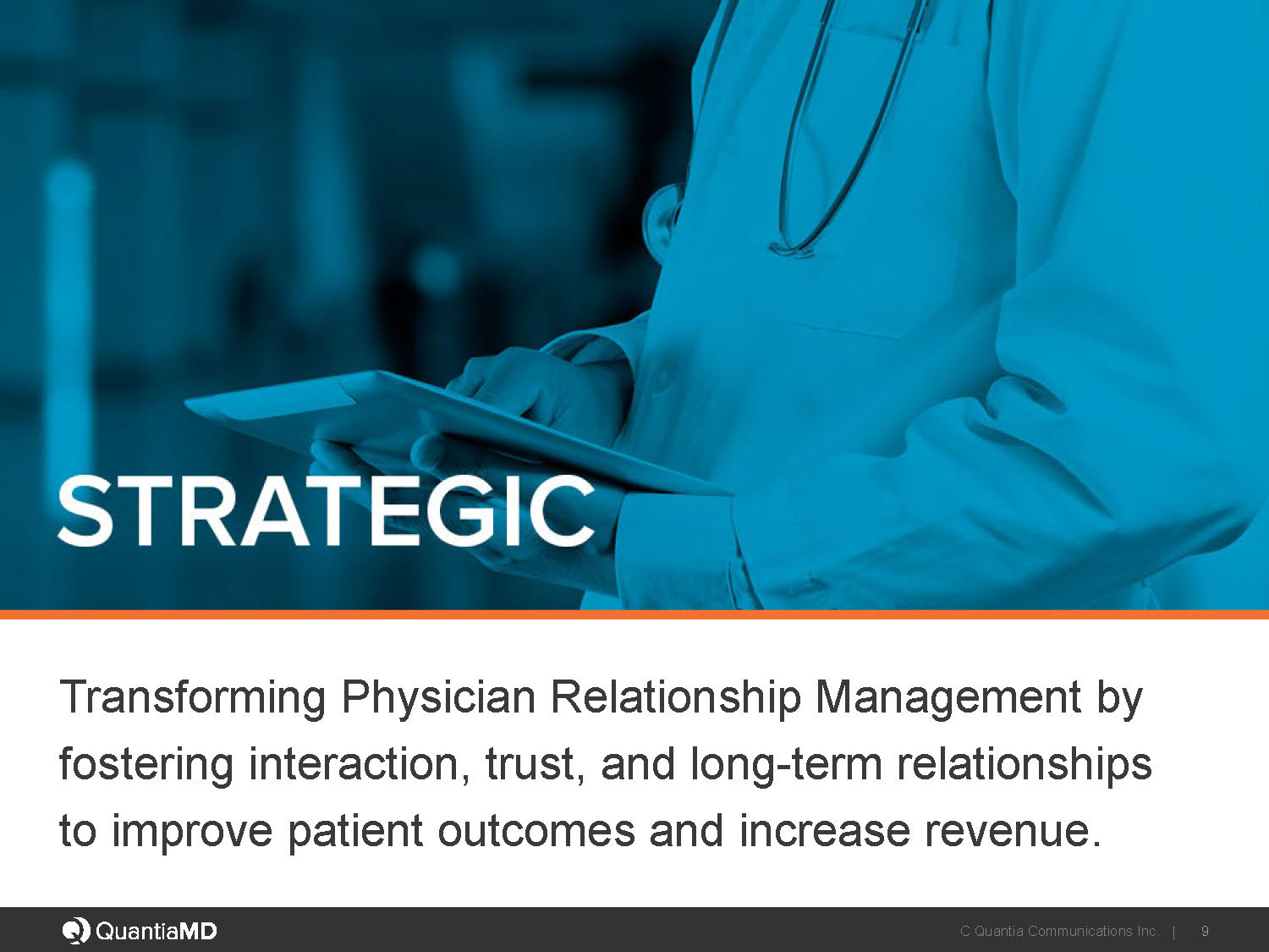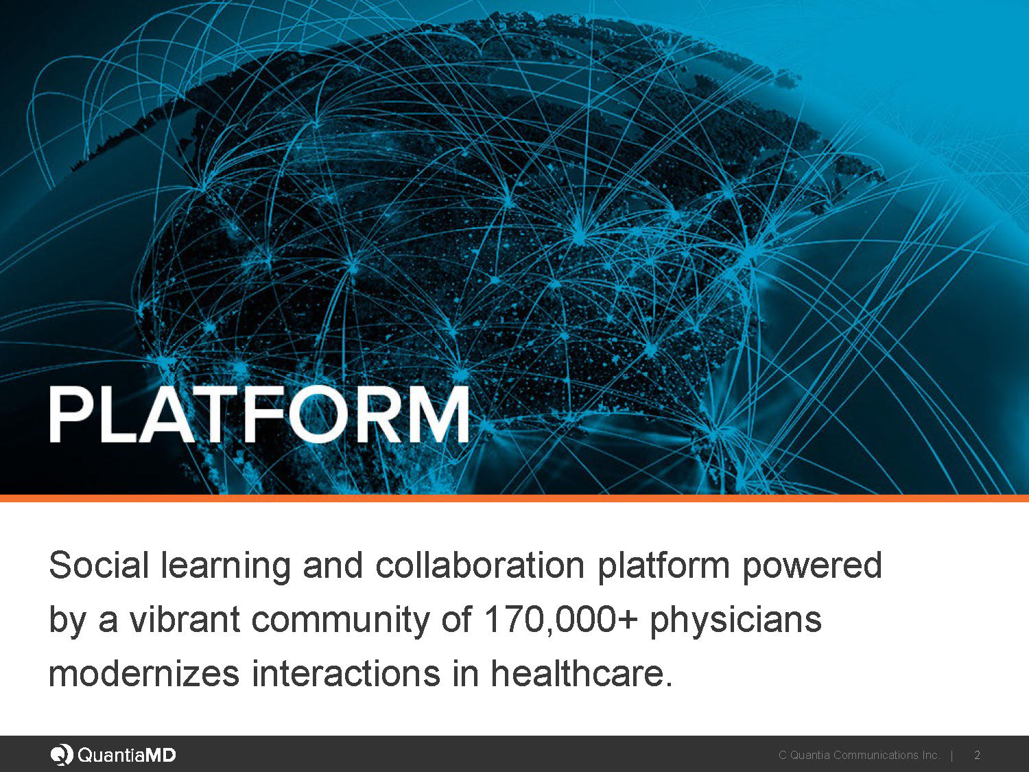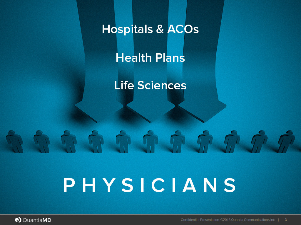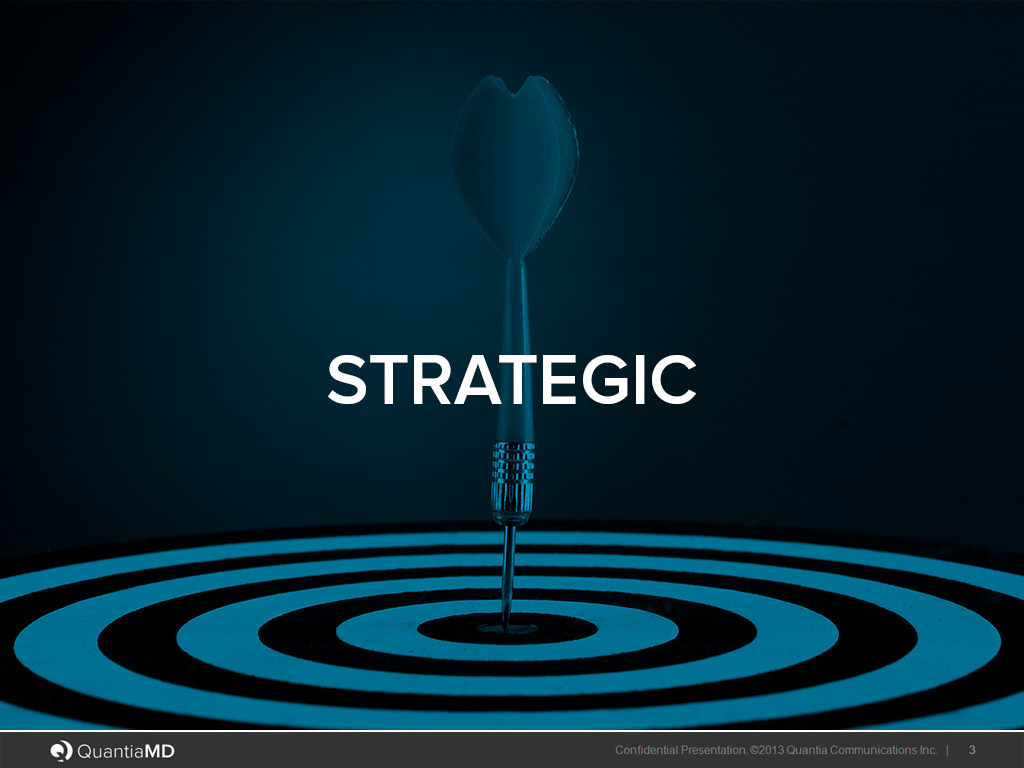 QuantiaMD needed a bold new direction in visual identity plus slides with minimum amount of copy. Here are 3 consecutive iterations of the decks where I definitely prefer version #02.